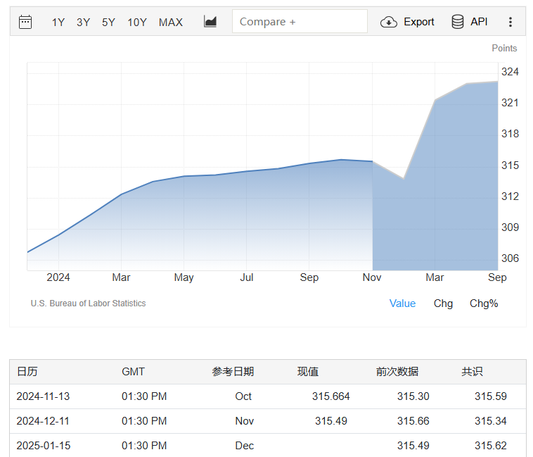 Wednesday’s CPI report is scheduled for release at 9:30 ( UTC+8 ) . The core CPI, which excludes food and energy costs, is expected to rise 0.2% month-on-month in December, down from 0.3% in November; while the year-on-year growth rate is expected to be 3.3%, above the Fed’s 2% target and the same as the readings in the previous three months.
