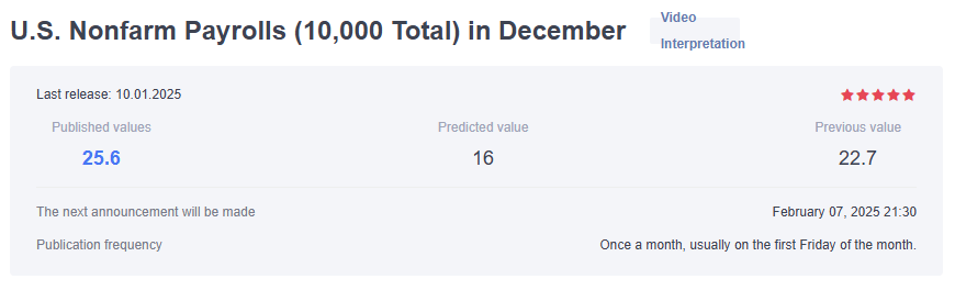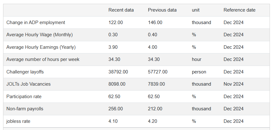 In December 2024, the U.S. economy added 256,000 new jobs, which was higher than market expectations of 160,000 and a new high since April 2024 . The previous data for November was lowered to 212,000, and the data for October was also adjusted, resulting in a total reduction of 8,000 positions in October and November. In December, job growth was mainly concentrated in the fields of health care (46,000), government (33,000) and social assistance (23,000).