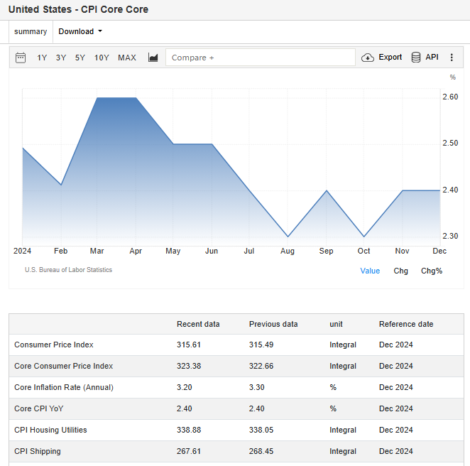 The latest US inflation report released on Wednesday showed that the overall CPI in December was basically in line with expectations, while the core CPI eased. The monthly rate of the US CPI after seasonal adjustment in December was 0.4%, the highest since March 2024, higher than market expectations and the previous value of 0.3%; the annual rate of the US CPI without seasonal adjustment in December was 2.9%, in line with expectations, and warmer than the previous value of 2.7%. The monthly rate of the US core CPI without seasonal adjustment in December was 0.2%, in line with market expectations, and cooler than the previous value of 0.3%; the annual rate of the US core CPI without seasonal adjustment in December was 3.2%, the lowest since August 2024, and the market expected it to remain unchanged at 3.3%.