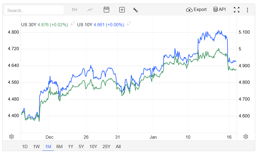 Treasury yields have risen sharply in recent weeks after the Federal Reserve in December downplayed the prospect of rate cuts and predicted that inflation would be firmer in 2025 than previously forecast. Concerns about the potential negative impact that Trump’s policies could have on inflation remain an issue. Fed officials on Wednesday pointed to heightened uncertainty in the coming months as they await initial glimpses of the incoming administration’s policies, even as they said Wednesday’s data showed inflation was continuing to ease.