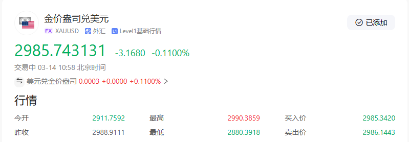 Vào ngày 13 tháng 3 năm 2025, thị trường vàng quốc tế đã đạt đến một cột mốc quan trọng. Giá vàng tương lai COMEX tăng vọt lên 3001,3 đô la một ounce trong quá trình giao dịch, lần đầu tiên vượt qua mốc số nguyên 3000 đô la. Vàng giao ngay tại London đóng cửa ở mức 2988,26 đô la một ounce, cả hai đều đạt mức cao kỷ lục.
